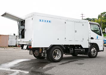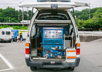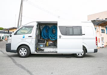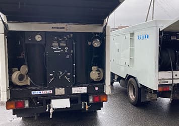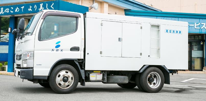 大型車載型(トラックマウントシステム)のスチームクリーニングマシンを使用し、高温、高圧スチームで洗浄します。